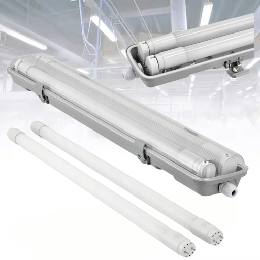 Corp iluminat ermetic 2x120cm + 2x tub LED 18W, pentru garaj/atelier, lumina neutra