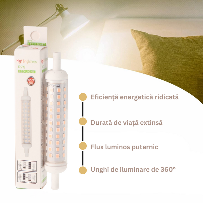 Bec LED liniar R7S 10W 1000lm, 118mm - iluminare puternica și clară