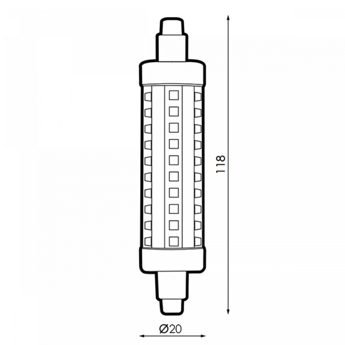 Lungime: 118mm – standard pentru corpurile de iluminat R7S