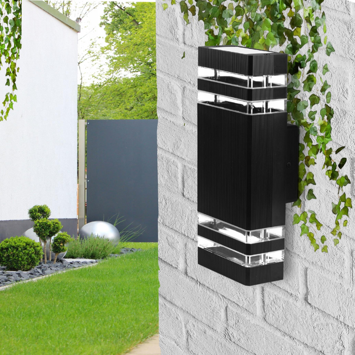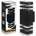 Iluminare Eficientă: Aplica dispune de două dulii GU10, care permit montarea a două becuri LED cu o putere maximă de 35W fiecare. Această configurație oferă un efect de flux luminos decorativ pe ambele părți ale aplicei, iluminând fațada sau elementele de arhitectură mică cu eficiență.