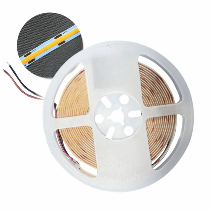 Banda LED COB Premium 12V 3000K, IP65, rola 5 metri - pentru iluminatul de accent sau de siguranta in exterior sau interior