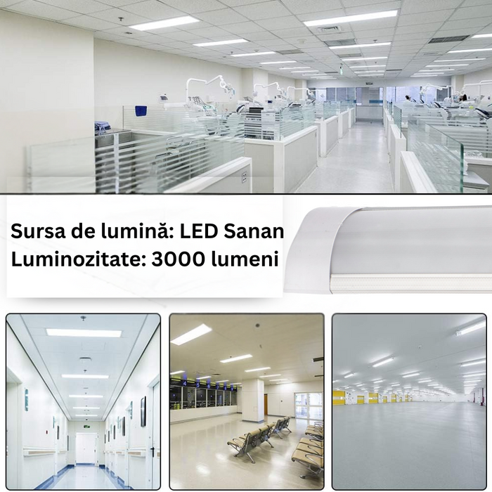 Bară LED de 40W cu lungimea de 1200 mm, ideală pentru iluminatul eficient al spațiilor interioare comerciale, industriale sau rezidențiale. Echipată cu sursă de lumină Sanan și un flux luminos de 3000 lumeni, această bară oferă o iluminare uniformă și clară, cu o eficiență de 75 lm/W și un unghi de dispersie de 120°.