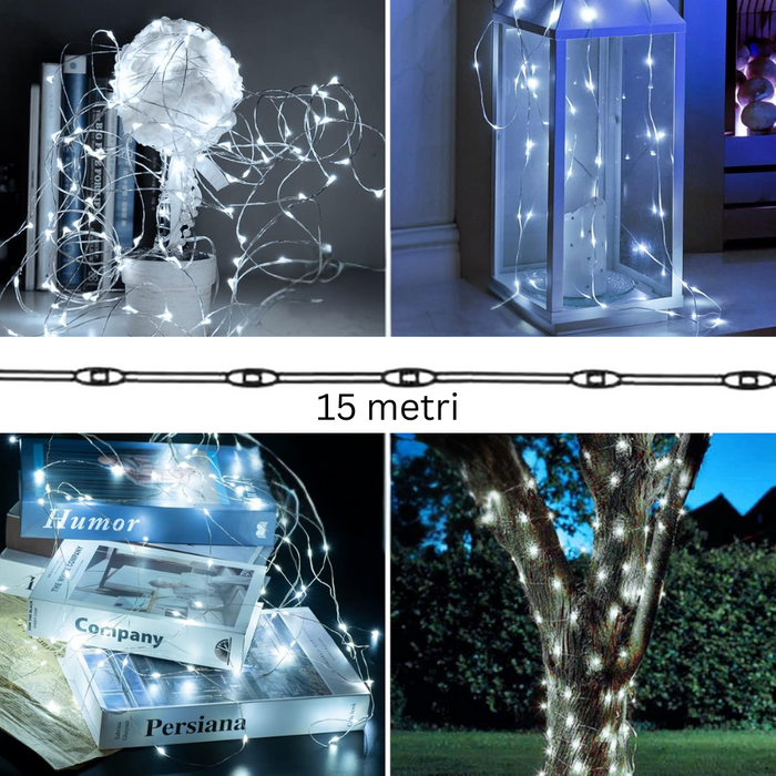 Ghirlanda luminoasă LED flexibilă, cu alimentare USB și lumină alb-rece (7000K), ideală pentru a decora grădini, terase, evenimente în aer liber sau chiar spațiile interioare. Datorită celor 15 metri lungime și finisajului transparent, o poți modela cu ușurință după imaginația ta, creând diverse forme și aranjamente personalizate.