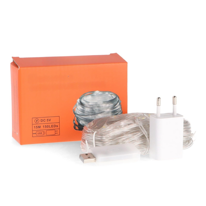 Ghirlandă luminoasă LED flexibilă, 15 m, cu alimentare USB, 7000K – interior și exterior