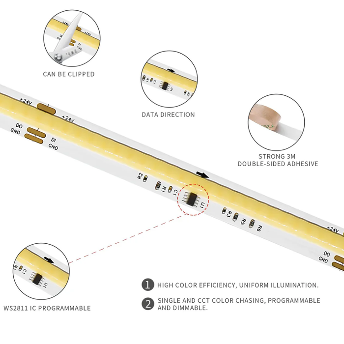 Kit Banda LED COB Digital Running Light 24V, WS2811, 360 LED/m, 10W/m, 5 metri
