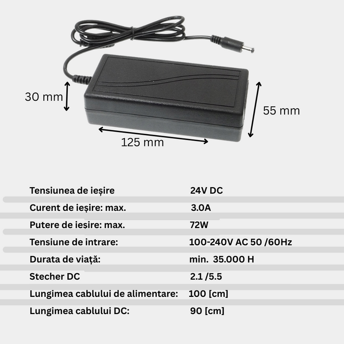 Alimentarea la 24V asigură consum redus și funcționare stabilă, fără riscuri termice sau scurtcircuite – perfect pentru utilizare zilnică.