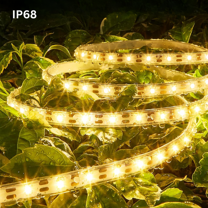 Fabricată pentru utilizare în exterior, banda LED este complet protejată împotriva apei și prafului, având grad de protecție IP68, ideală chiar și pentru zone expuse ploii sau stropilor.
