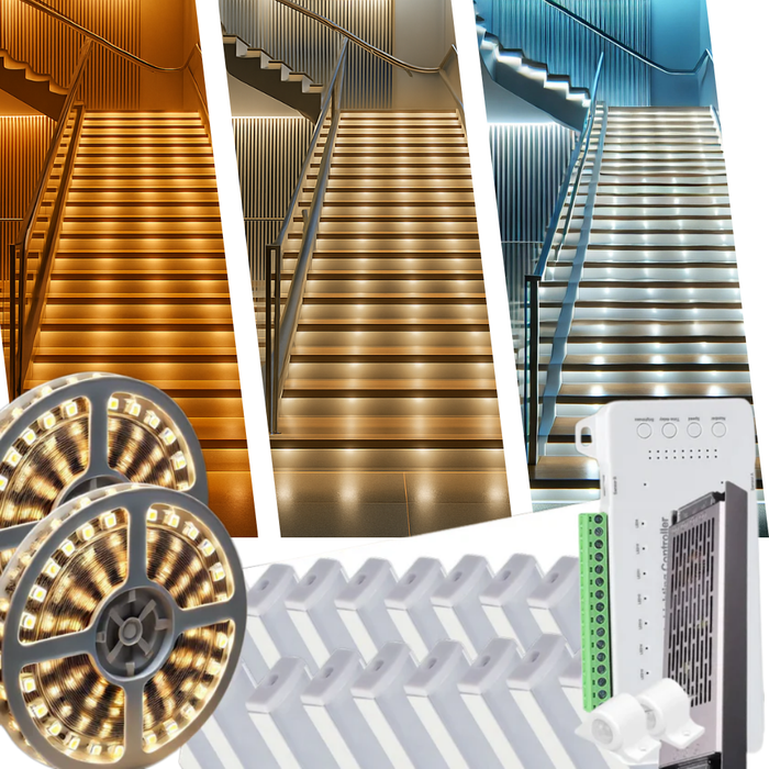Iluminare Inteligentă pentru Scări - Kit Complet cu Senzori și Bandă LED 24V, Sursă Alimentare, Controller si 16 Profile din Aluminiu