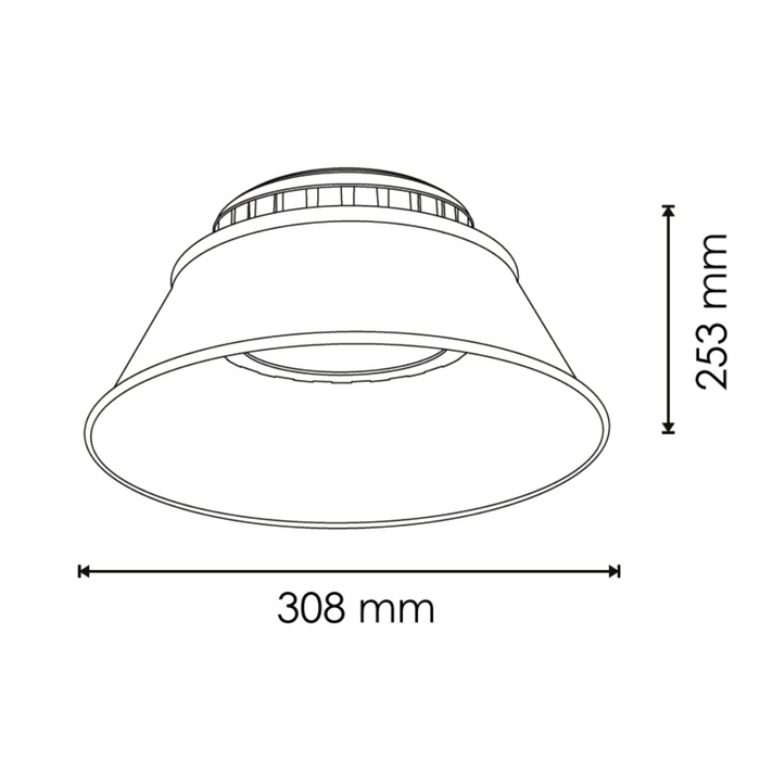 Cu dimensiuni de 308x253H mm, este ușor de instalat în spații cu tavan înalt. Greutatea redusă facilitează procesul de montaj. Fie că administrezi un depozit, conduci o fabrică sau vrei să îmbunătățești iluminatul dintr-un atelier, aceasta lampă este soluția perfectă.