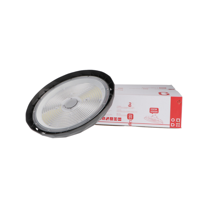Lampă Industrială LED UFO 200W, 36000 lm, Driver Philips, IP65, 0-10V, 5000K – Corp Profesional pentru Hale și Depozite