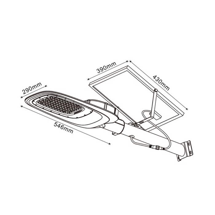 Lampa solară este echipată cu o baterie LiFePO₄ (LFP) de 3.2V și 30.000mAh, potrivită pentru iluminat puternic, de lungă durată. Panoul solar de 30W colectează energia solară în timpul zilei, permițând încărcarea rapidă a bateriei. Sursa de lumină este compusă din Led-uri Sanan, care generează un flux luminos de 3600 lumeni.