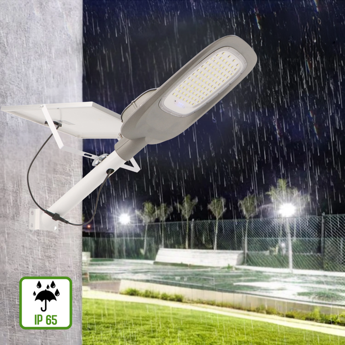Cu un unghi de fascicul de 140°x70°, această lampă oferă o distribuție uniformă a luminii, acoperind o zonă largă de iluminare. Designul compact al lămpii și al panoului solar facilitează instalarea și integrarea în mediul exterior. Clasa de protecție IP65 garantează rezistența la apă și praf, asigurând funcționarea în condiții diverse.