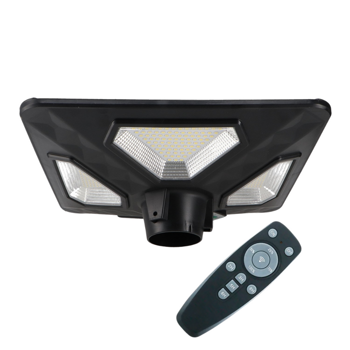 Include o telecomandă practică, ce permite reglarea modului de funcționare, activarea manuală sau programarea automată, oferind utilizatorului un control complet asupra iluminării. În plus, are un buton frontal integrat pentru pornire/oprire manuală sau trecerea la mod automat prin senzor.