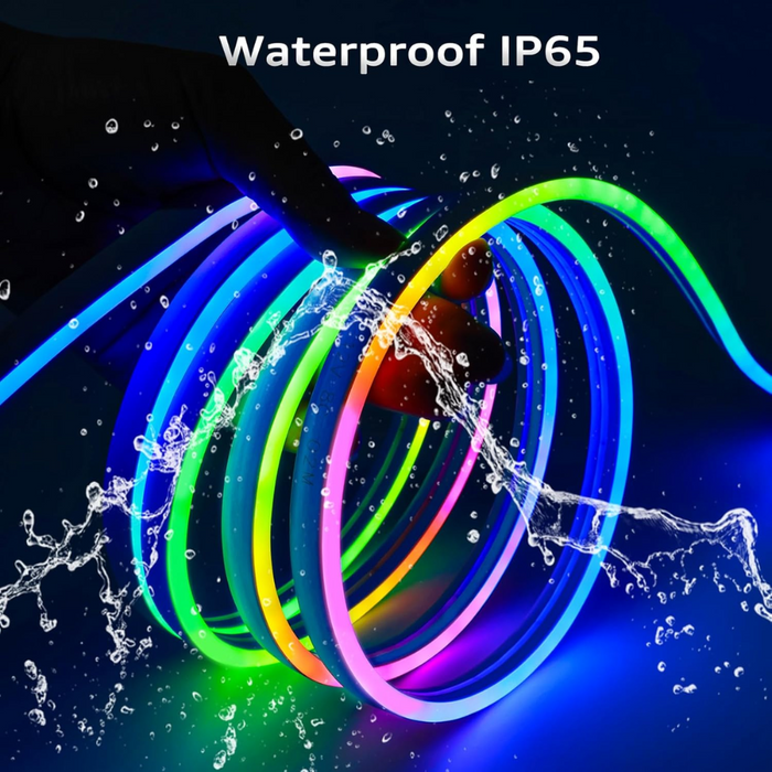 Cu o putere de 14W/m și control RGB complet, poți crea cu ușurință atmosfere dinamice, elegante sau creative, fie în interior, fie în exterior. Datorită protecției IP65 și a materialelor rezistente, (policarbonat, durabil și rezistent la UV) banda neon flex este pregătită pentru orice provocare.