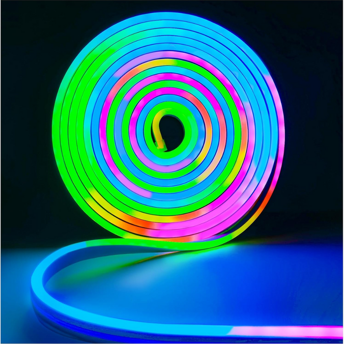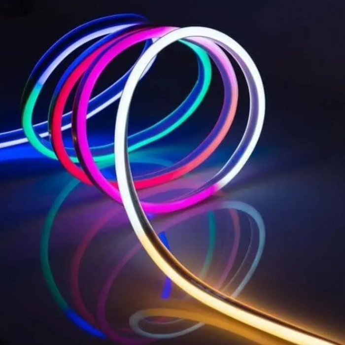 Neon Flex-ul RGB 12V, este conceput pentru a oferi efecte vizuale spectaculoase si se recomandă pentru realizarea literelor luminoase, decorurilor arhitecturale, vitrine comerciale sau iluminat ambiental modern.