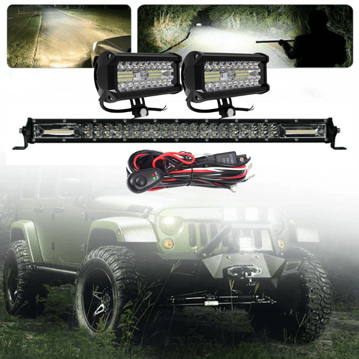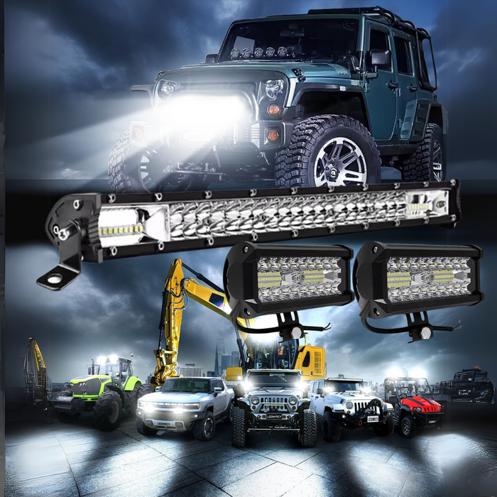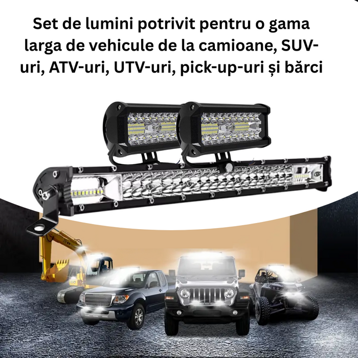 Set lumini auto special conceput pentru a îmbunătăți vizibilitatea în condiții dificile de drum, oferind un nivel superior de siguranță atât în traficul urban, cât și în aventurile off-road. Indiferent dacă circulați pe șosele, teren accidentat, drumuri montane, acest pachet de lumini off road va asigura o lumină puternică și uniform distribuită pentru o experiență de condus mai sigură.
