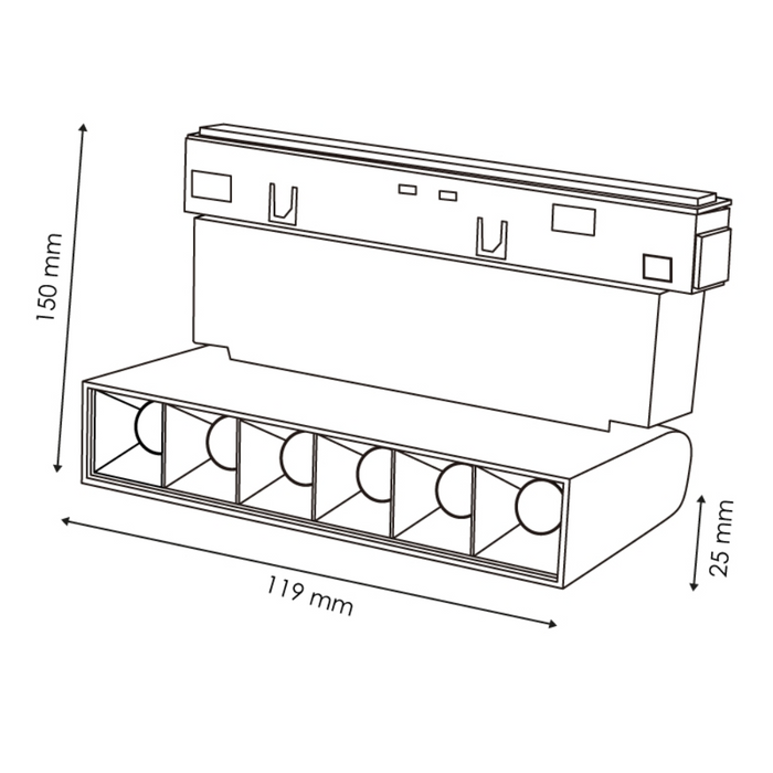 Proiectoarele liniare cu LED chip Osram 6W Aotrom sunt proiectate pentru a fi montate pe sina magnetica din seria 20mm. Acestea au un magnet puternic incorporat care le permite sa se fixeze ferm pe sina, fara a necesita suruburi sau alte elemente de fixare. Realizate din aluminiu, vopsit in camp electrostatic, proiectorul este disponibil in finisaj alb si negru asemenea sinelor magnetice.