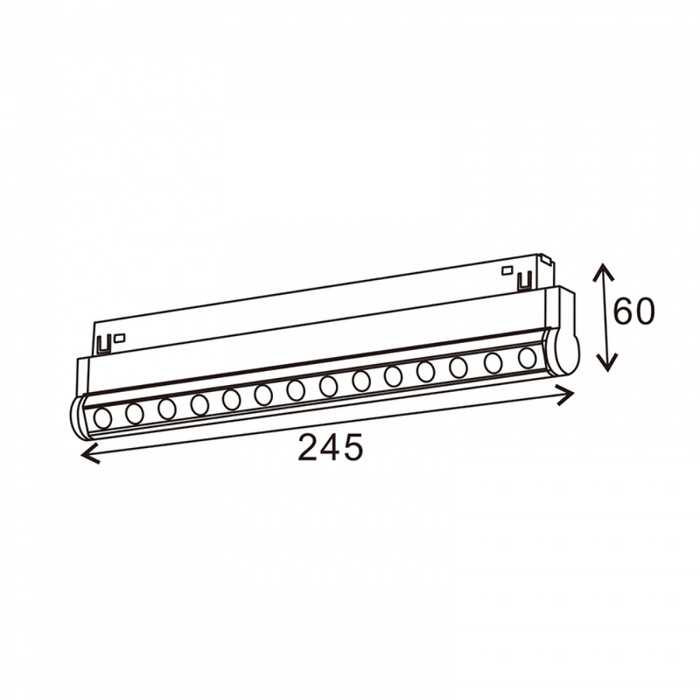 Proiectoarele LED liniare sunt proiectate pentru a fi montate pe o sina magnetica. Acestea au un magnet puternic incorporat care le permite sa se fixeze ferm pe sina, fara a necesita suruburi sau alte elemente de fixare. Realizate din aluminiu, vopsit in camp electrostatic, proiectorul este disponibil pe culoarea negru si alb, asemenea sinelor magnetice.