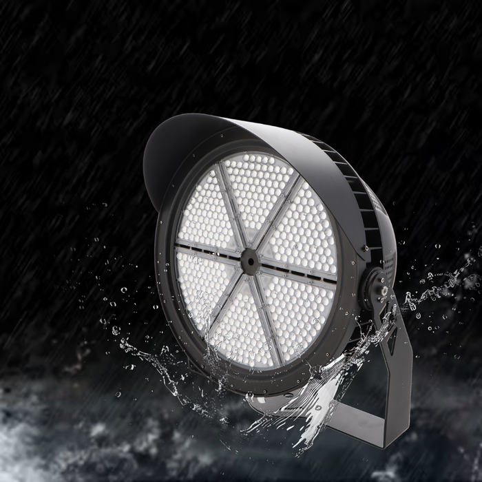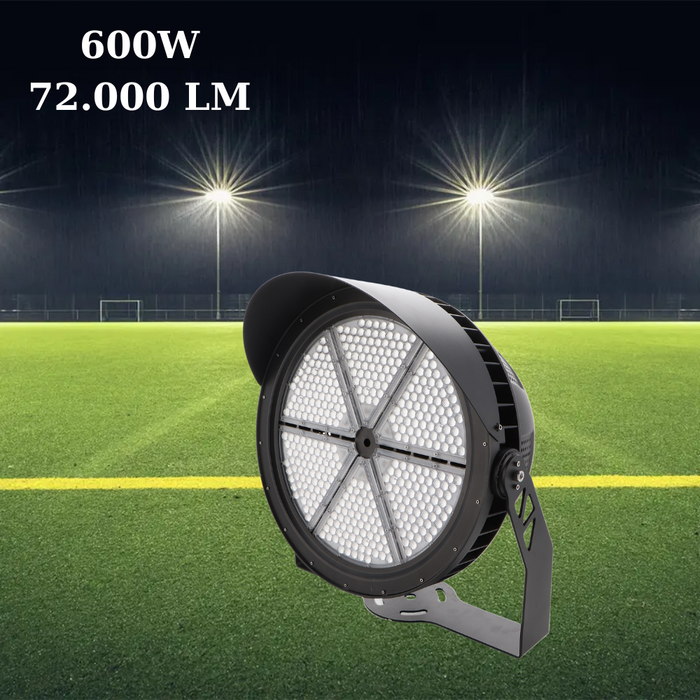 Proiector LED profesional cu o putere de 600W, si un flux luminos impresionant de 72.000 lumeni care asigură o lumină intensă, capabilă să ilumineze suprafețe mari fără compromisuri. Cu o eficiență luminoasă de 120 lm/W, acest proiector este soluția ideală pentru iluminarea eficientă a spațiilor mari, fie că vorbim de zone industriale, stadioane/arene sportive sau parcări.