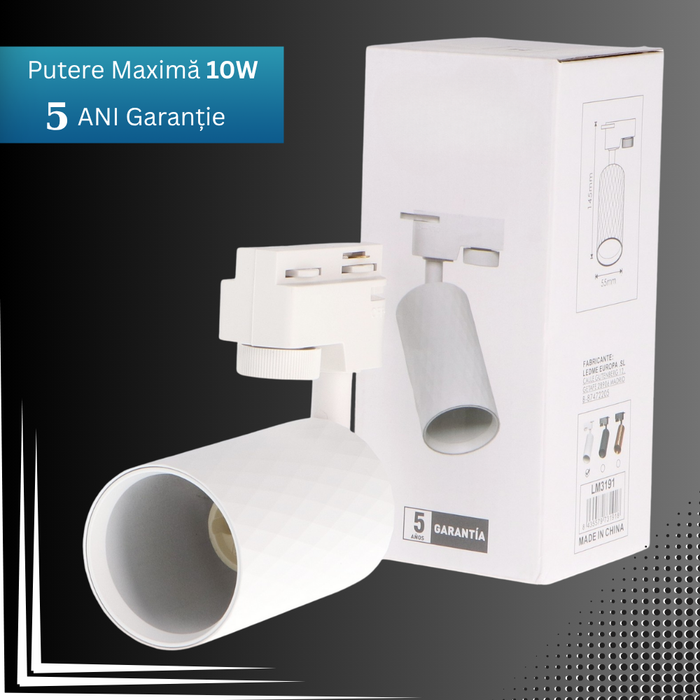 Șina monofazată din aluminiu de culoare alb  (lungime 1 m) se fixează direct pe tavan și se alimentează rapid la 230V. Odată montată, proiectoarele se cuplează instant printr-un simplu clic. În plus, poți extinde oricând sistemul prin adăugarea mai multor șine sau proiectoare, adaptând totul după preferințele tale.