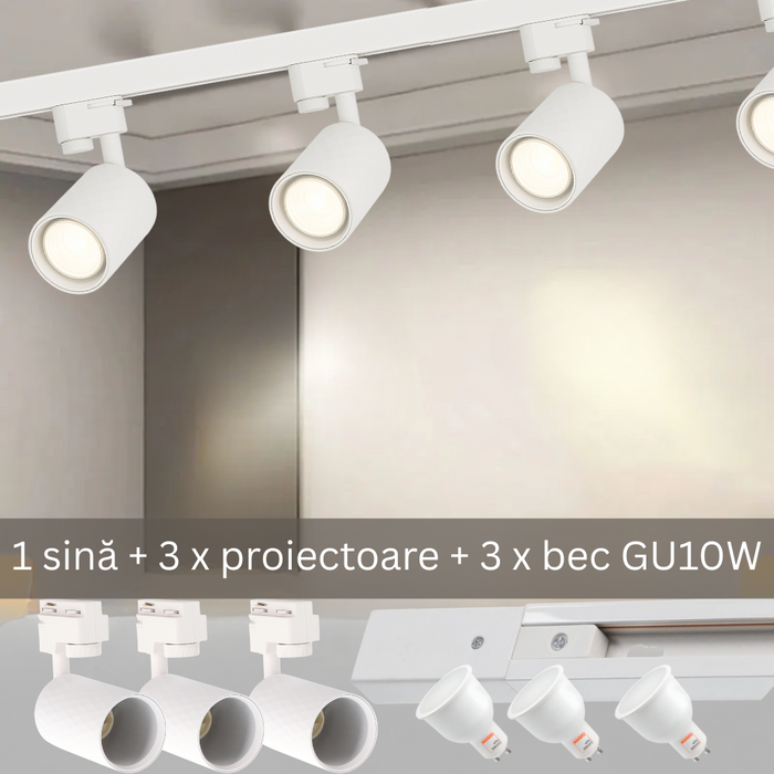 Set Sina Alba 1 Metru cu 3 Proiectoare DIAMOND, 3 x bec LED GU10 Osram 10W