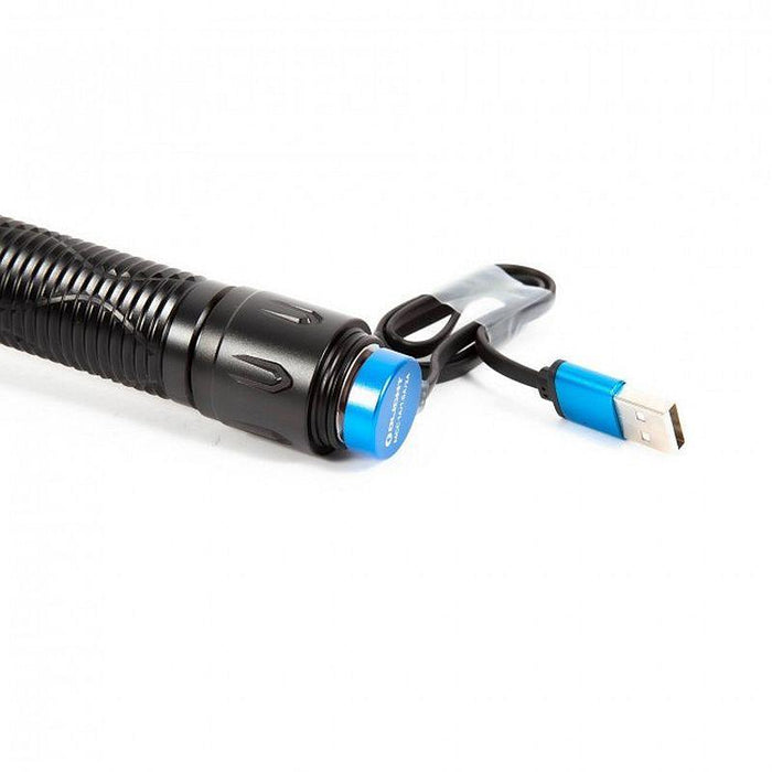 Lanterna este reincarcabila magnetic USB, pachetul de acumulatori si firul de reincarcare magnetic USB fiind incluse. Reincarcarea lanternei se realizeaza extrem de simplu si rapid prin simpla fixare magnetica a banutului pe butonul din spate si introducerea mufei USB in orice sursa de curent (nu este inclusa) ca: incarcatorul telefonului, laptop, calculator, incarcator masina, baterie externa etc. Incarcarea completa de la zero, folosind un incarcator USB de minim 2A se realizeaza in apoximativ 10 ore.
