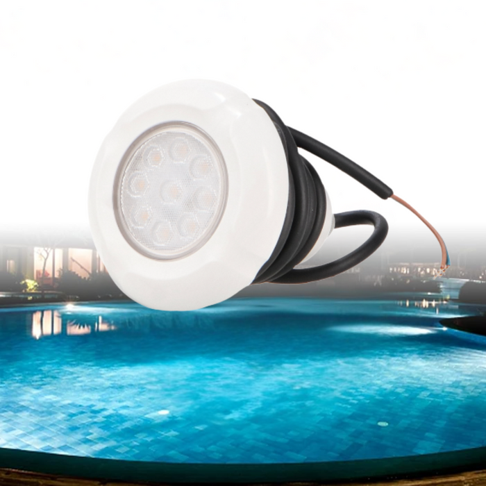 Cu spotul LED RGBW 7W echipat cu LED-uri Osram, ai parte de culoare, performanță și protecție completă la apă. Funcționează la 12V AC/DC, are protecție IP68 și poate fi montat cu încredere în medii complet submersibile. Oferă 420 lumeni de lumină vibrantă, cu unghi de 60°, ideal pentru evidențierea formelor și volumelor din bazin.
