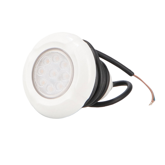 Echipat cu LED Osram de înaltă eficiență, spotul oferă o luminozitate de 700 lumeni, cu un unghi de iluminare de 60°, ideal pentru evidențierea clară a volumului de apă. Carcasa din policarbonat, cu grad de protecție IP68, îl face complet etanș și rezistent la submersie  perfect pentru utilizare permanentă sub apă, în condiții dificile.
