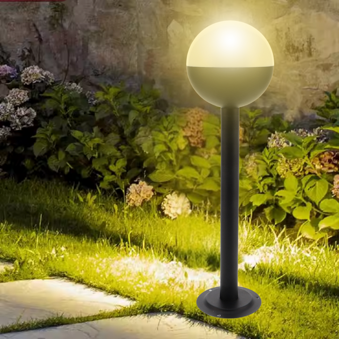 Stalp Decorativ Iluminat Gradina Glob Cam, 80 cm, Alb/Negru