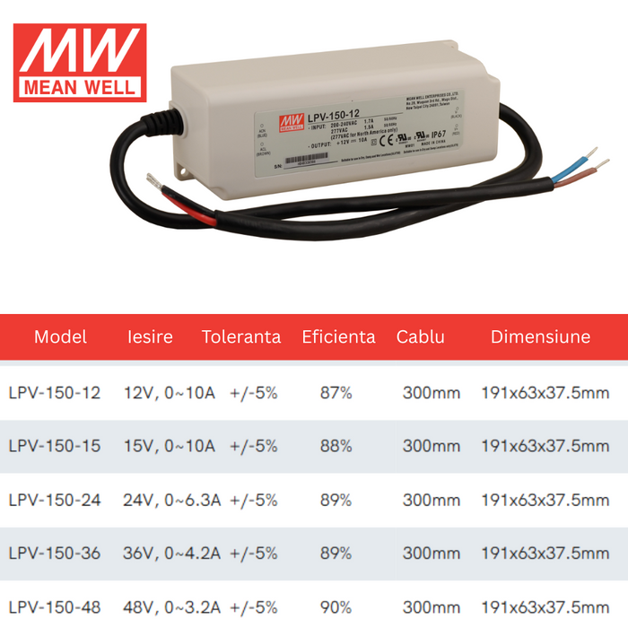 Sursa alimentare LPV-150-12 Mean Well 150W 12V IP67