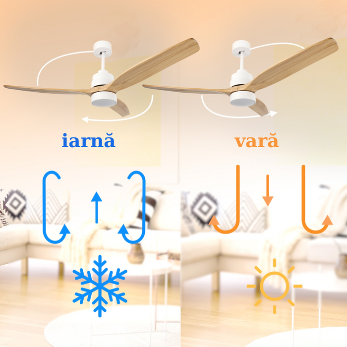 Funcția de iarnă - modificarea direcției de rotație a lamelor, distribuind uniform căldura de la instalația de caldură care se ridică spre tavan în timpul iernii.